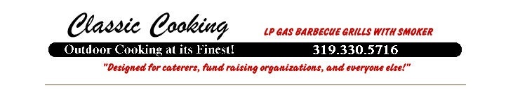 Classic Cooking Grills We have 38 years of experience providing everything you could want in a gas barbeque. If you don't see it here, we'll custom build it for you! © Classic Cooking Grills Inc. - James Ford 5709 Oakcrest Hill Rd SE Riverside IA, 52327 Home: (319) 629-4309 Cell: (319) 330-5716 ClassicCookingGrills@ccgrills.com |